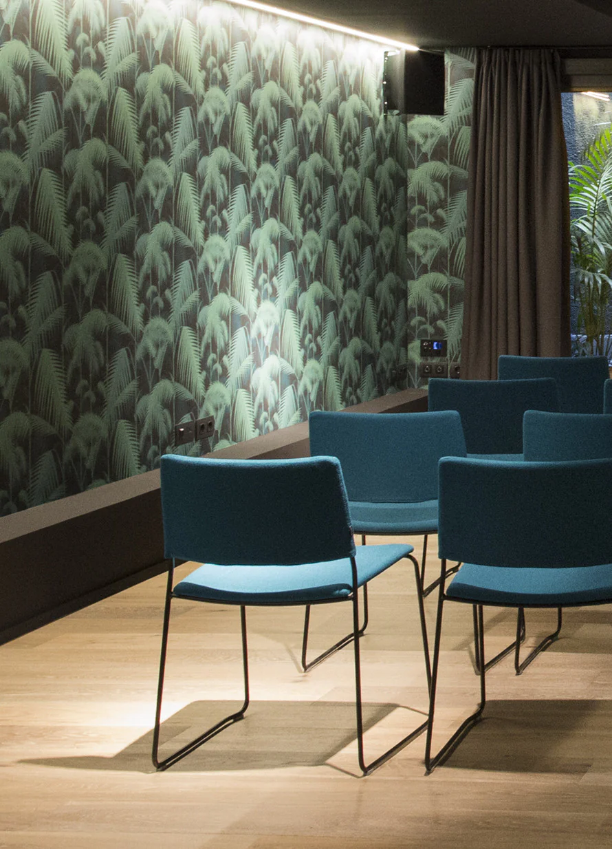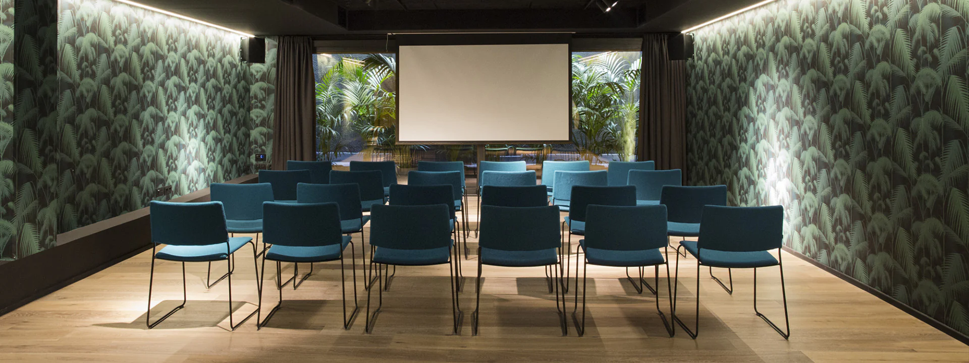 A 56 m² multi-purpose room, equipped with a full HD projector, surround sound equipment, several audio outputs and HDMI sockets, and high speed Wi-Fi network. An ideal inside space for business meetings as well as for private events.