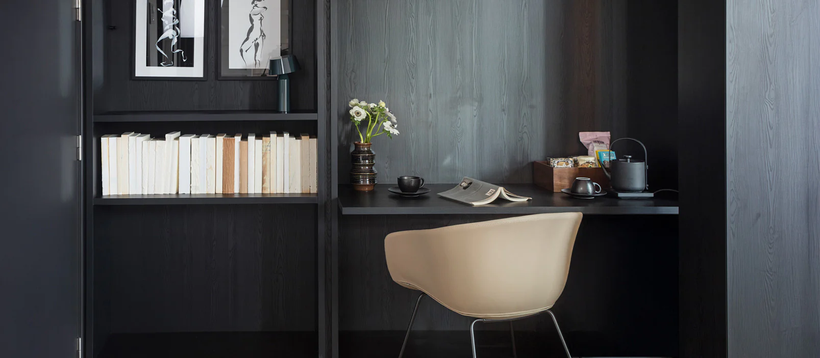 Quiet by design. Comfortable by nature. For those who want to be in the center but still feel like they have their own quiet space. Soft light, warm textures, and enough room to fully recharge.