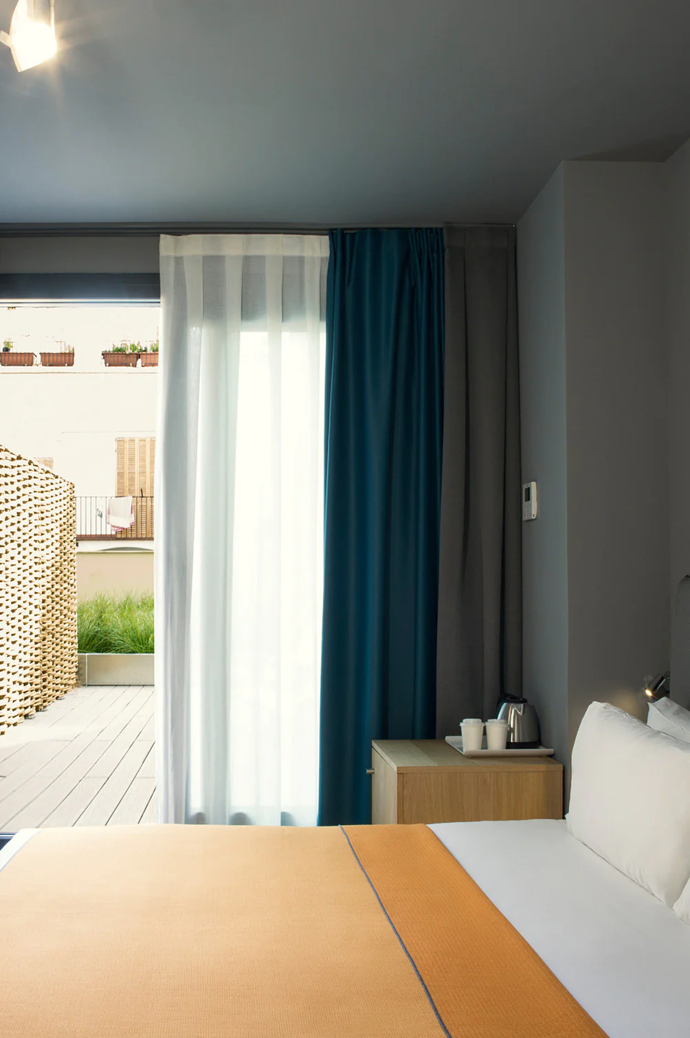 Introducing a small room with a big surprise: a terrace to enjoy. Double occupancy for single use recommended for one person but with a maximum capacity of 2 guests. The bed is accessible from just one side. Size doesn´t sacrifice the comforts you will find. Step inside this room and discover that the magic is in the details.